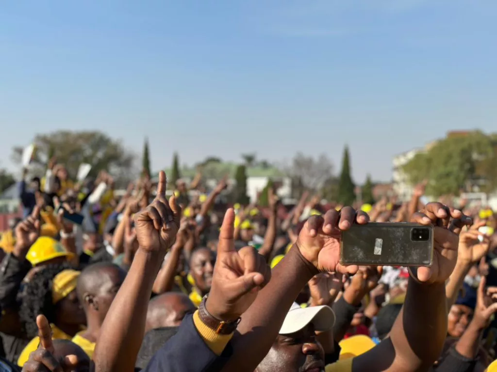 Pictures of Citizens Coalition for Change president Advocate Nelson Chamisa addressing a rally in South Africa